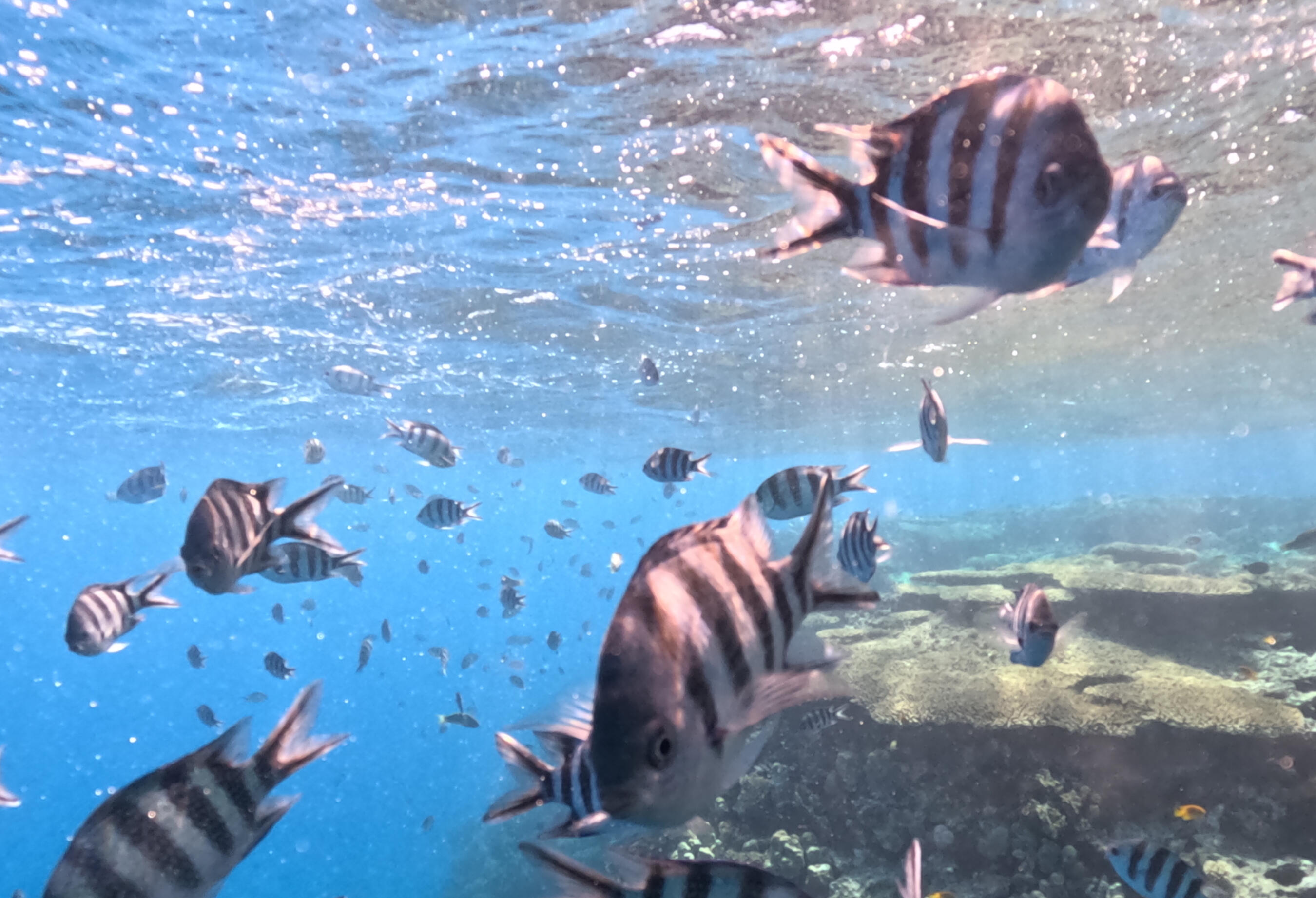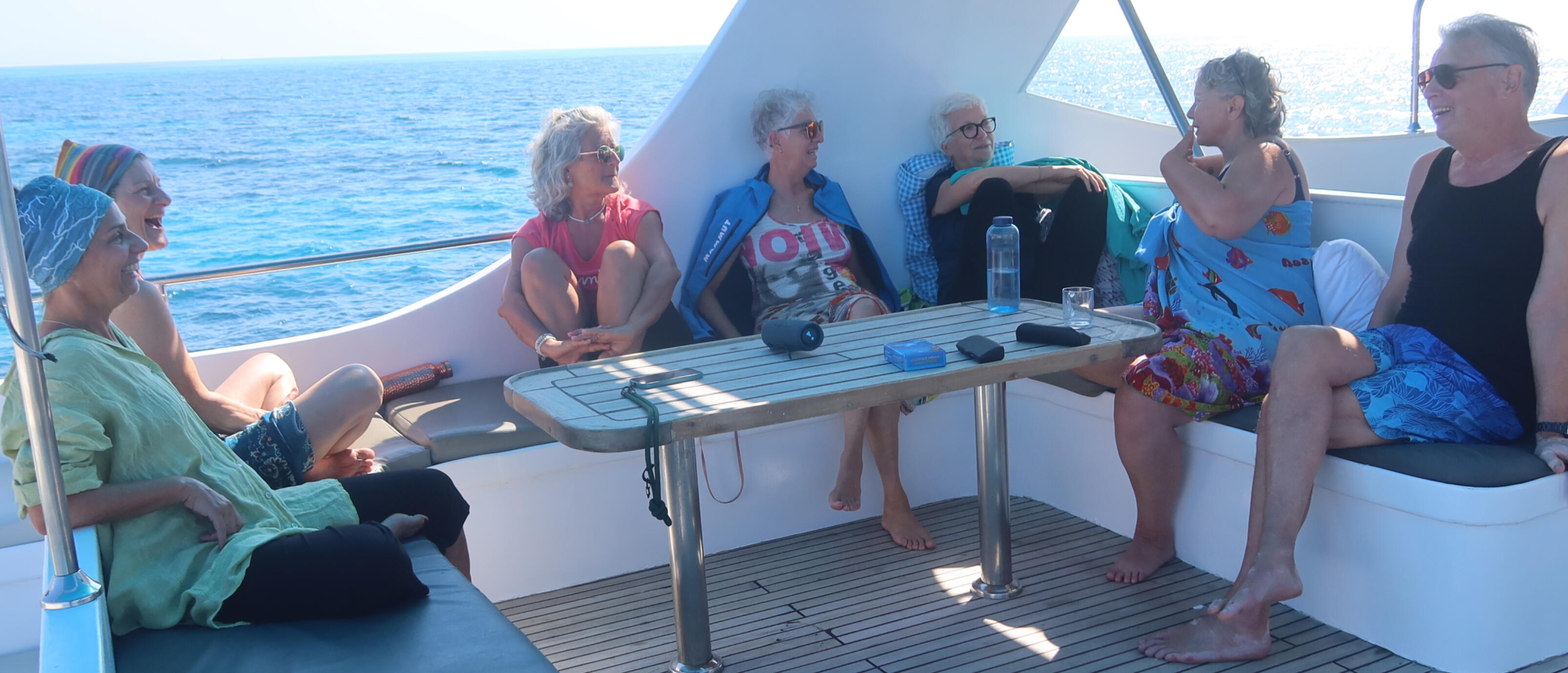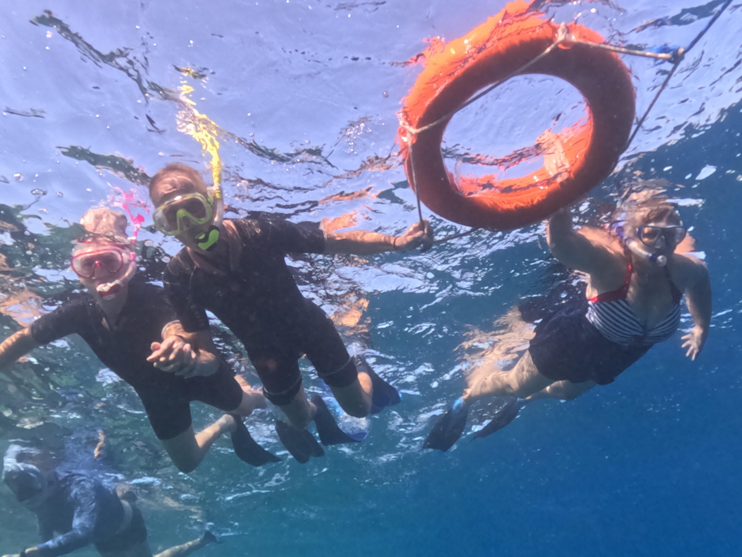 mit einer kleinen Einführung ins Schnorcheln oder Apnoetauchen, Atem- und Relaqua®-Übungen im Wasser und an Land und täglichen Möglichkeiten, am wunderschönen Hausriff zu schnorcheln.